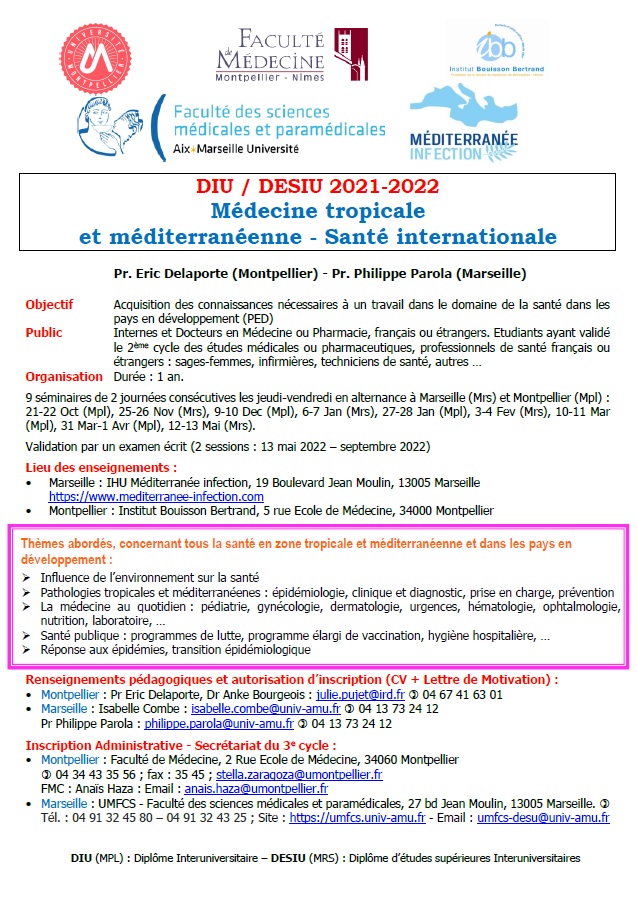 - Université de Yaoundé, Cameroun et Université de Montpellier : DIU Prise en charge globale de l’infection par le VIH en Afrique