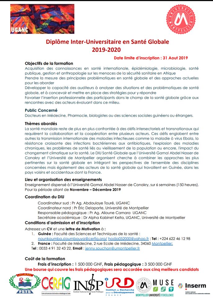 - Université Gamal Abdel Nasser de Conakry et Université de Montpellier : DIU Santé globale
