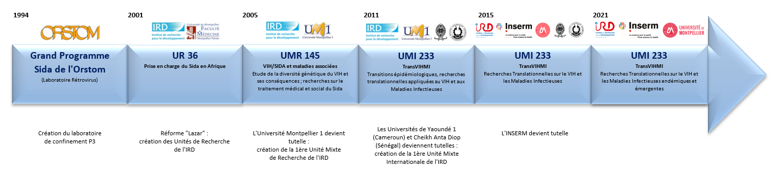 Le 1er janvier 2011 a été créée la 1ère Unité Mixte Internationale de l’IRD : l’UMI 233 TransVIHMI a ainsi vu le jour. Ses Tutelles initiales en France sont l’IRD et l’Université de Montpellier 1. Elle est associée au Cameroun avec l’Université de Yaoundé 1 (UY1) et au Sénégal avec l’Université Cheikh Anta Diop de Dakar (UCAD).