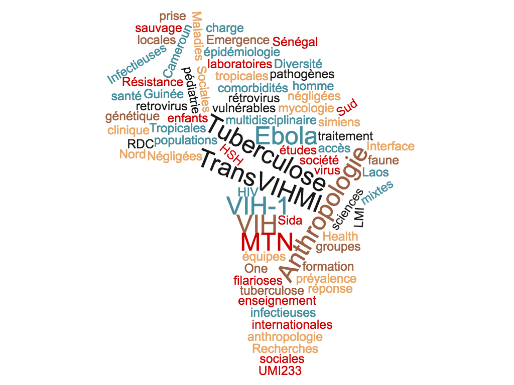 L’UMI 233 étudie principalement les spécificités de l’infection par le VIH au Sud et ses conséquences pour les populations. L’impact du VIH sur les autres endémies infectieuses tropicales fait que le champ des recherches aborde aussi la problématique des co-infections (hépatites, tuberculose) et d’autres maladies tropicales négligées telles que les filarioses et plus récemment l’infection par le virus Ebola. Autour de cette unité thématique, et cela depuis sa création il y a près de 20 ans, l’UMI 233 mène des travaux de recherches transversales pluridisciplinaires associant virologie, parasitologie, clinique, épidémiologie, santé publique et sciences sociales.